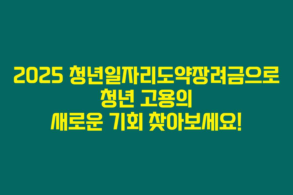 제가 직접 알아본 바로는, 2025 청년일자리도약장려금은 중소기업과 중견기업에게 최대 1,200만원을 지원해주는 제도로써, 청년 인재 채용에 대한 부담을 덜어주는 매우 큰 도움이 될 수 있습니다. 아래를 읽어보시면 청년 고용의 새로운 기회를 확보하는 데 필요한 정보가 쏙쏙 들어올 거예요!