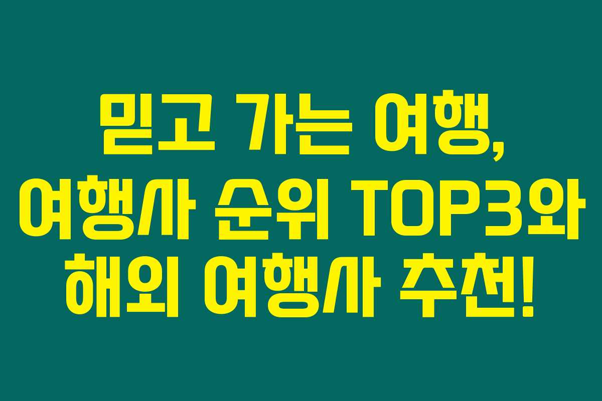 제가 알아본 바로는, 여행을 계획할 때 가장 중요한 부분은 믿을 수 있는 여행사를 선택하는 것입니다. 특히 수많은 여행사 중에서 어떤 곳이 신뢰할 수 있는지는 미리 알아두는 것이 좋죠. 아래를 읽어보시면 여행사 순위를 국내 및 해외별로 정리하고, 각 여행사에 대한 추천 이유를 소개해 드리겠습니다.