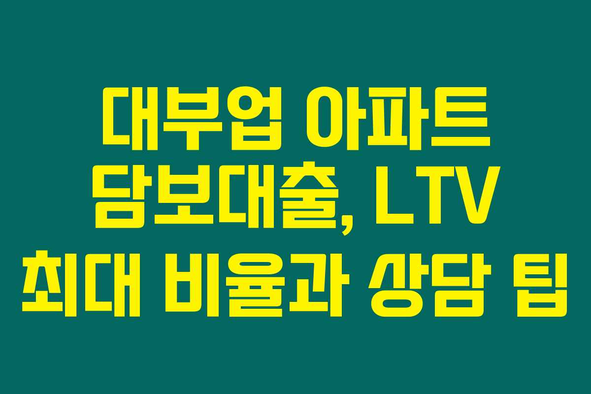 대부업체에서 아파트 담보대출을 신청할 때는 해당 업체의 정책에 따라 LTV 비율이 달라질 수 있습니다. 저는 다양한 대부업체를 비교하여 대출 한도, 금리, 상환 방식 등을 분석해보는 것이 필요하다고 생각해요.