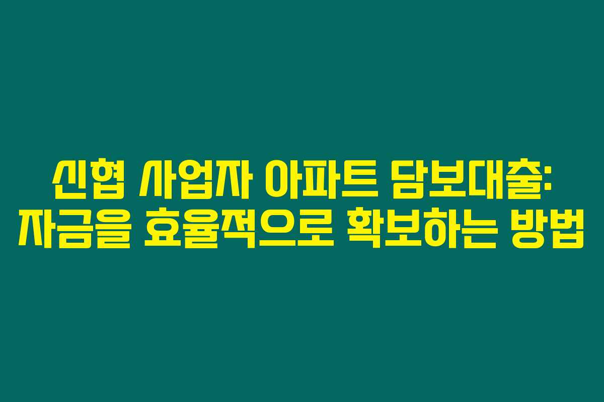- 1. 신협 사업자 아파트 담보대출은 어떻게 신청하나요?