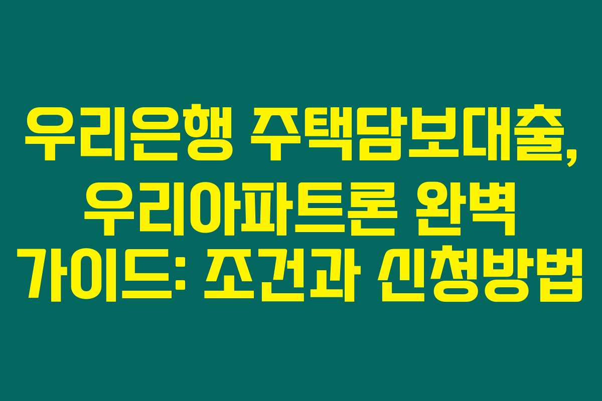 - 1. 우리은행 주택담보대출 우리아파트론, 무엇인가요?