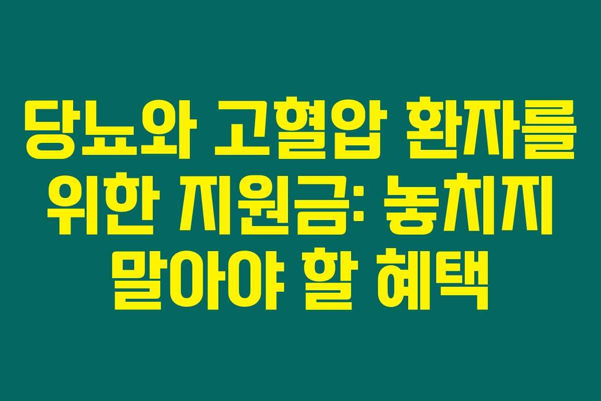 여러분, 당뇨와 고혈압 환자 여러분들께서는 이러한 지원금 제도를 놓치지 말고 꼭 신청하시길 바랍니다. 건강생활실천지원금제는 여러분의 건강을 지키고 유지하는 데 큰 도움이 될 것입니다. 최대 6만원까지 지원받을 수 있는 기회를 통해 건강 관리에 더욱 힘써 보세요!