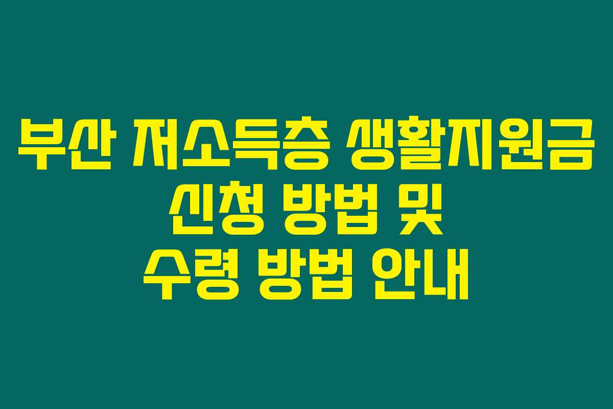 - 2. 부산 저소득층 생활지원금 신청 방법 및 수령 방법