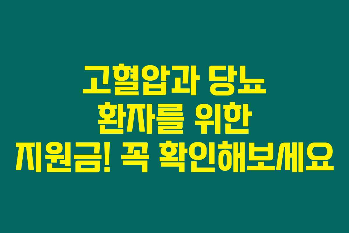 제가 직접 알아본 바로는, 고혈압과 당뇨가 있으신 분들에게 주어지는 여러 가지 지원금이 많이 있답니다. 특히, 부모님이나 아는 분들에게 꼭 전해주면 좋을 소식이에요. 이 지원금으로 병원비와 약값을 절약할 수 있다니, 정말 유용하겠지요? 아래를 읽어보시면, 꼭 챙겨야 할 정보들을 한눈에 확인할 수 있습니다.