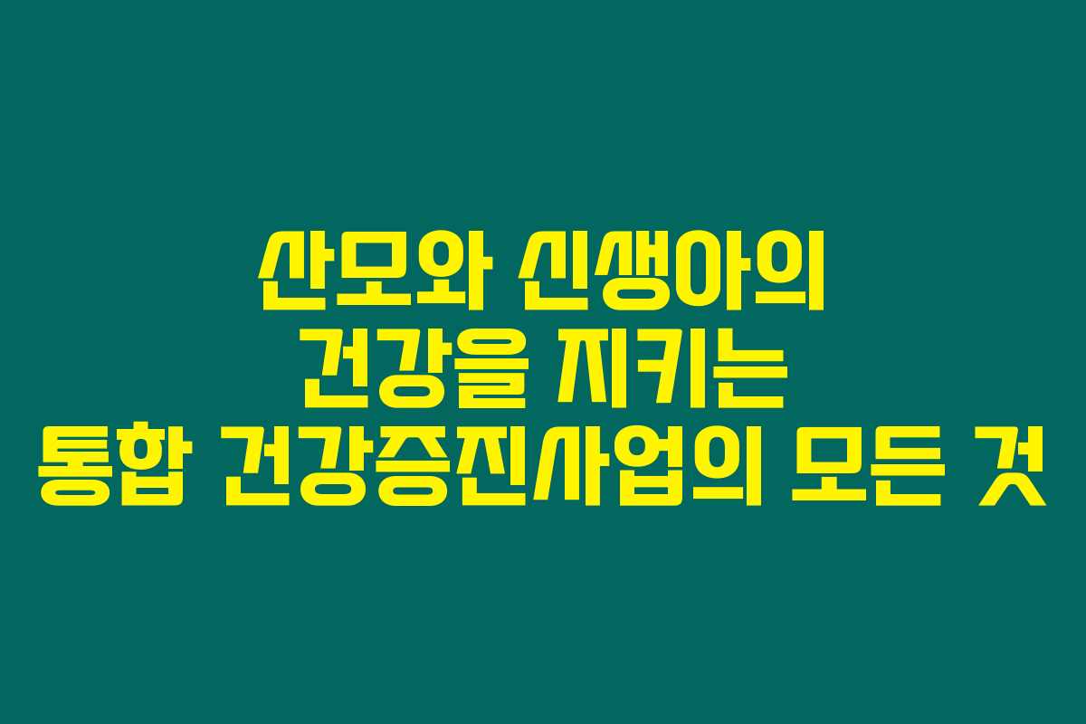 이와 같은 내용들을 통해, 산모와 신생아의 건강관리에 대한 체계적인 지원이 필요하며, 통합 건강증진사업이 매우 중요하다는 것을 알 수 있습니다. 여러분도 이 사업들을 통해 더 많은 정보를 얻고, 건강한 삶을 영위하는데 도움이 되시기 바랍니다!