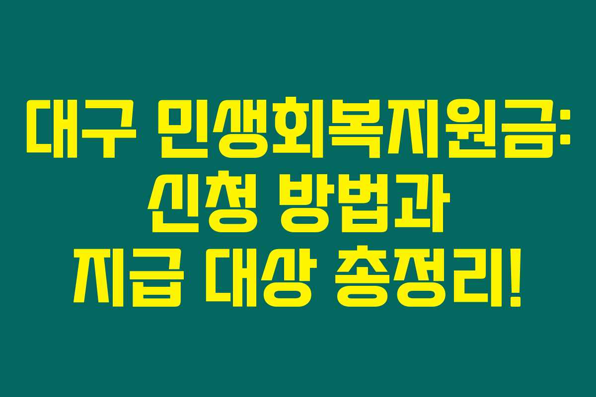 제가 알아본 바로는, 요즘 대구시에서 지원하는 민생회복지원금이 많은 이들의 관심을 끌고 있습니다. 이 지원금은 경제적으로 어려워진 시민과 소상공인을 도와주는 정책으로, 많은 분들이 어떻게 신청하고 어떤 조건을 만족해야 지급받을 수 있는지를 궁금해하고 있습니다. 아래를 읽어보시면 상세한 신청 방법과 지급 대상을 파악할 수 있습니다.