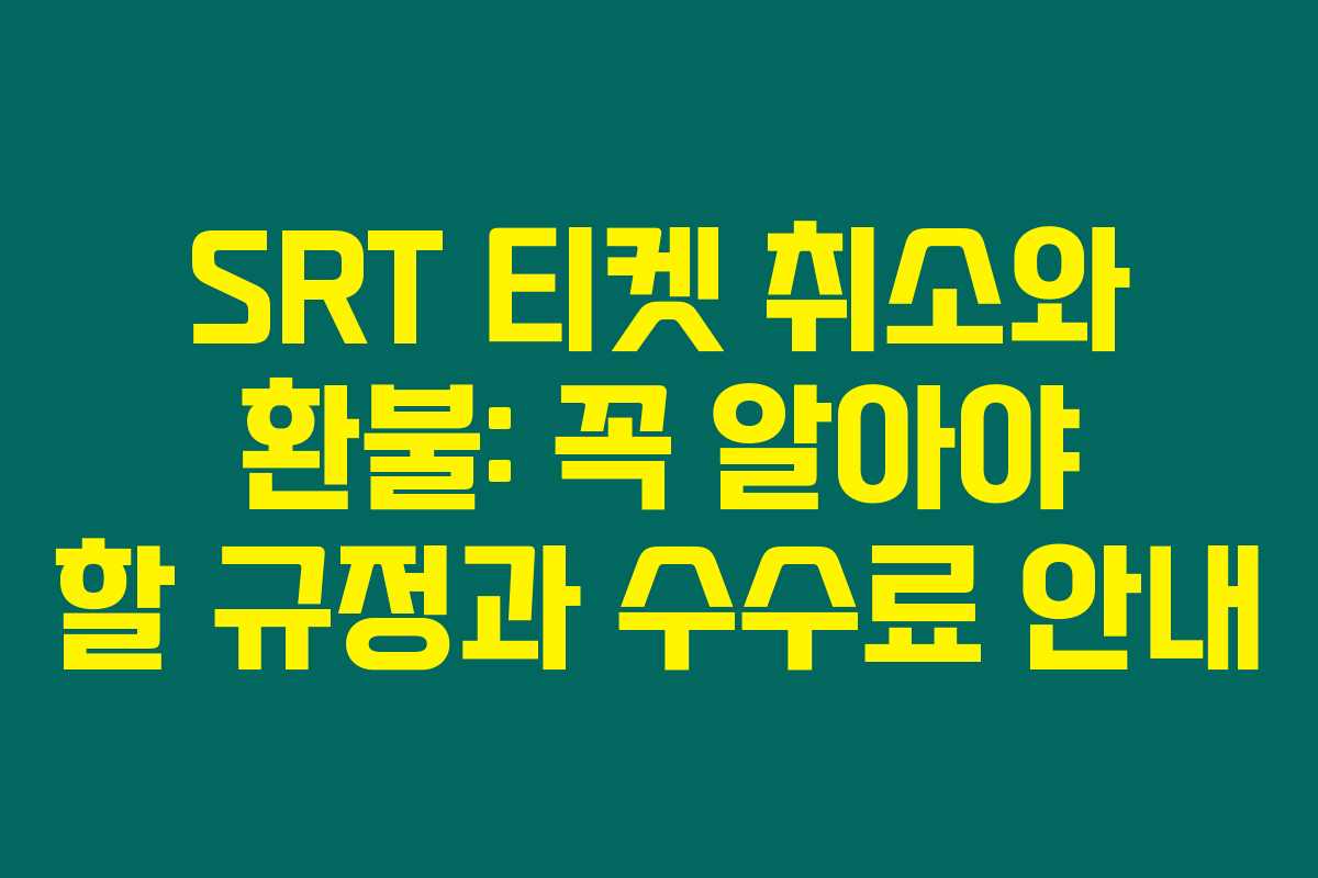 제가 알아본 바로는 SRT 티켓 취소는 출발 전과 후에 각각 다른 수수료가 적용돼요. 출발 1일 전까지는 무료로 취소할 수 있지만, 출발 당일에는 다음과 같은 규정이 있어요:
