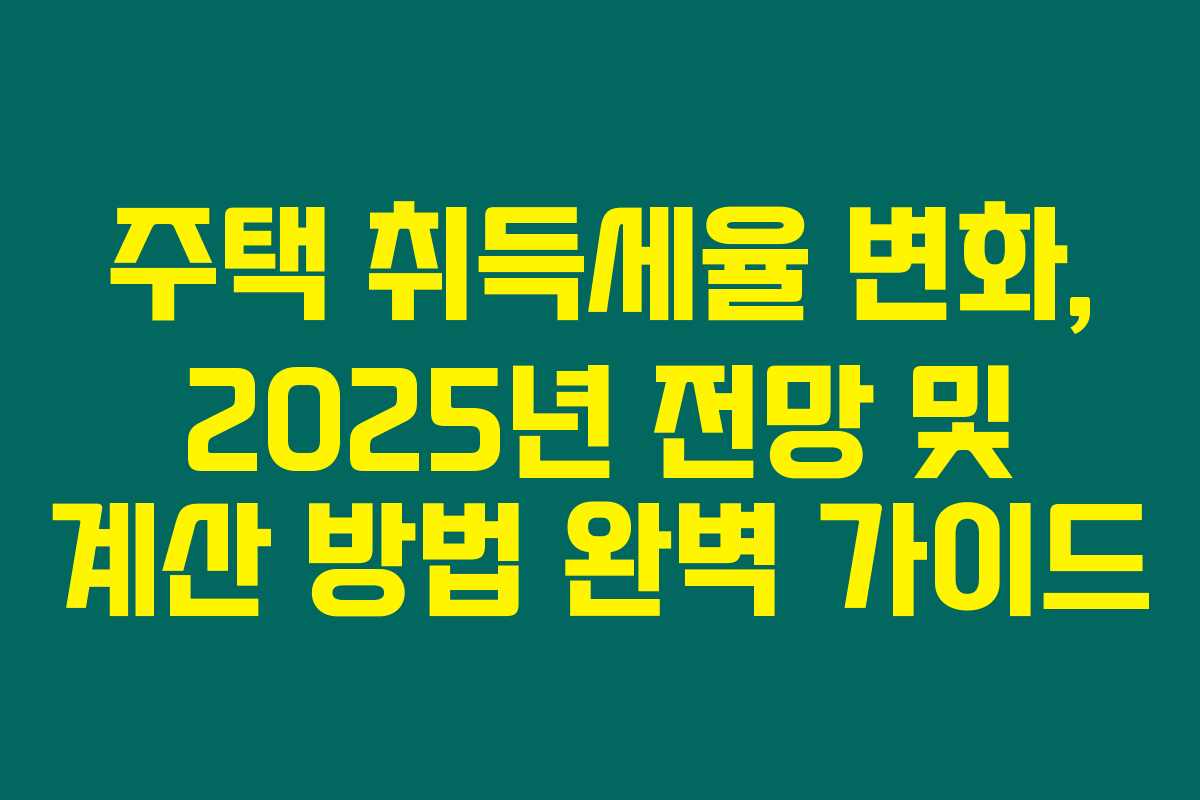 주택 취득세에 대한 이해는 주택 구매를 계획하는 모든 이들에게 매우 중요하다고 생각해요. 제가 알아본 결과, 2025년부터 취득세율이 변화하고 이로 인해 세금 부담이 달라질 수 있음에 주의해야 합니다. 특히, 주택 구매를 고려하는 분들에게 유용한 정보를 제공하기 위해 주택 취득세율 변화, 2025년 취득세율표와 계산 방법에 대해 자세히 정리해드릴게요.