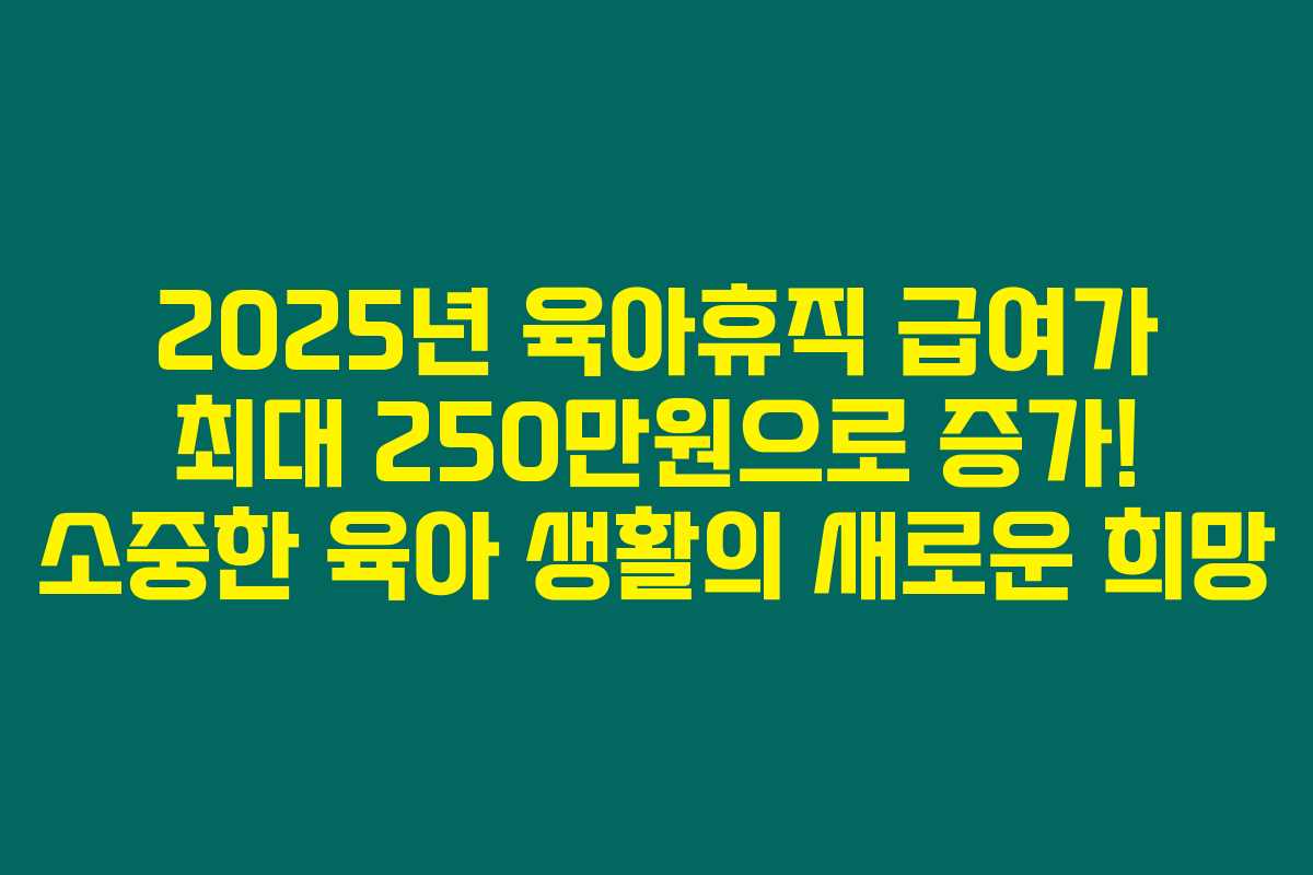 2025년 육아휴직 급여가 최대 250만원으로 증가! 소중한 육아 생활의 새로운 희망
