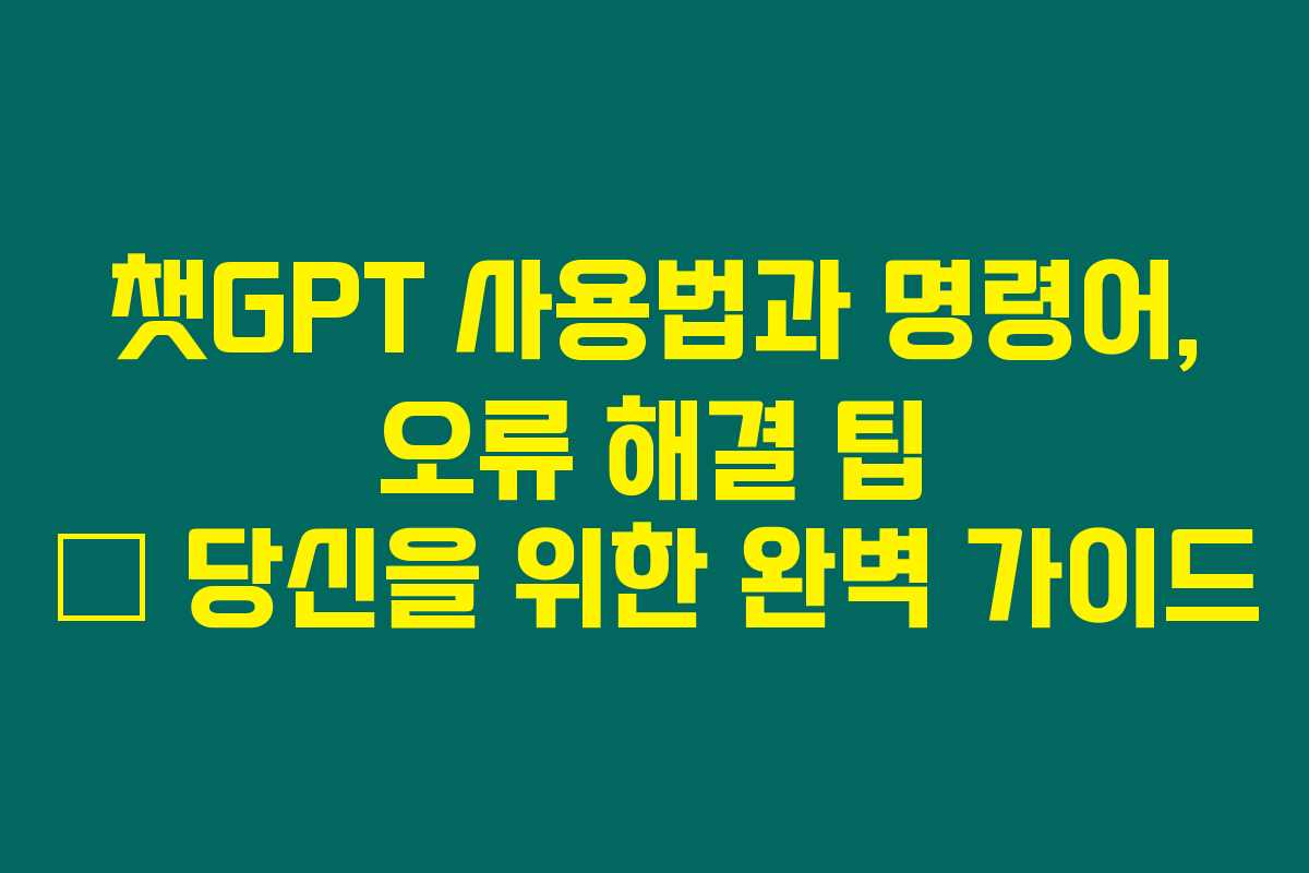 챗GPT에 대한 정보를 접하는 동안, 제가 직접 경험해본 바로는 이 AI 도구가 우리 일상생활에 많은 도움을 줄 수 있다는 사실을 깨달았어요. 챗GPT는 OpenAI에서 개발한 인공지능 언어 모델로, 사람과 자연스럽게 대화를 나누며 정보를 제공합니다. 오늘은 챗GPT의 사용법, 많이 사용하는 명령어, 그리고 오류 해결 방법에 대해 구체적으로 설명드릴게요.