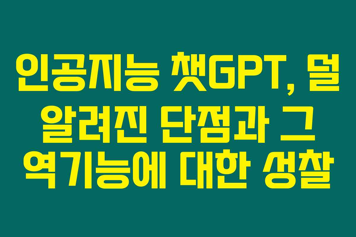 챗GPT에 대한 논의는 주로 장점에 집중되곤 합니다. 하지만 제가 경험해보니, 그것은 진정한 모습이 아니에요. 챗GPT의 단점은 다음과 같습니다: