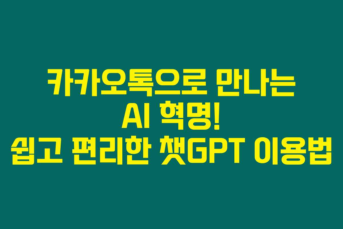 카카오톡에서 챗GPT를 이용하는 것은 이제 정말 쉽고 빠르답니다. 아래를 읽어보시면, 많은 분들이 이 서비스를 유용하게 활용할 수 있다는 것을 알게 될 거에요!