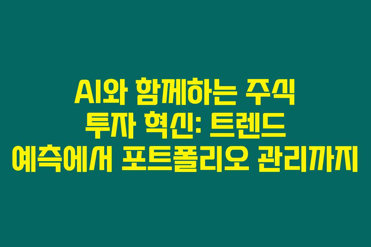 제가 직접 리서치한 바로는, AI 기술이 주식 투자 분석에서 점점 더 중요한 역할을 차지하고 있습니다. 과거의 데이터 분석과 시장 트렌드 예측을 통해 투자자들에게 더 정확하고 신속한 정보 제공이 가능해지면서, 이는 실제 투자 전략에 큰 영향을 미치고 있습니다. 아래를 읽어보시면 AI를 통해 어떻게 주식 투자에서 성공적인 결과를 얻을 수 있는지에 대한 실질적인 정보를 얻을 수 있습니다.