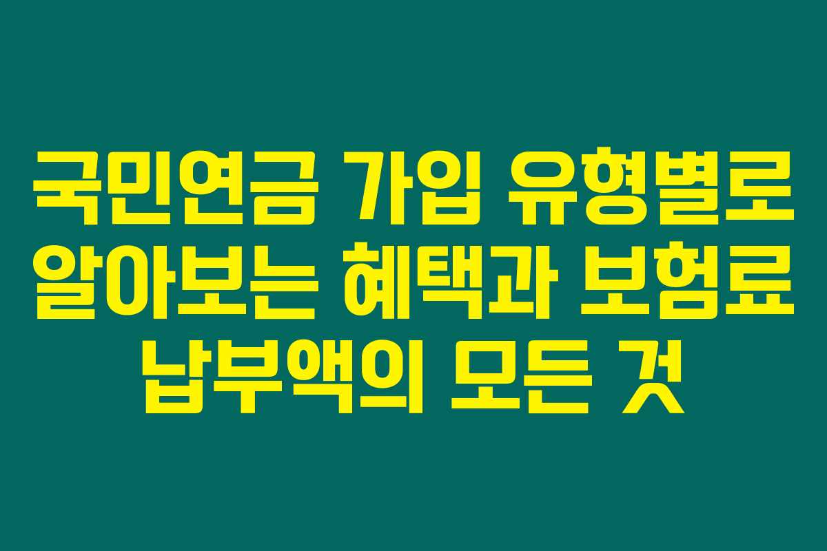 제가 직접 경험해본 결과로는 국민연금은 한국에서 가장 중요한 사회보험 중 하나로, 수급연령이 되면 매달 안정적인 급여를 받을 수 있는 제도입니다. 만 18세에서 60세 사이의 소득이 있는 국민은 의무적으로 가입하여야 하며, 국민연금 유형별로 가입 대상과 보험료 납부액이 다르게 설정되어 있어요. 아래를 읽어보시면 국민연금의 다양한 유형과 그에 따른 혜택 및 보험료를 자세히 알 수 있습니다.