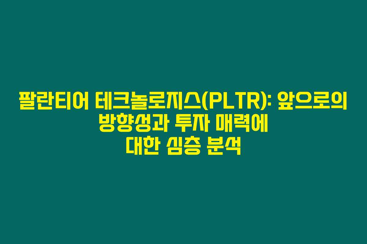 팔란티어 테크놀로지스(PLTR)는 여러 가지 요인을 고려할 때, 앞으로도 투자자에게 충분한 기회를 제공할 수 있는 매력적인 회사입니다. 데이터 분석과 AI의 필요성이 갈수록 높아지는 시대에 이 회사를 눈여겨보는 것도 좋은 전략이 아닐까요?