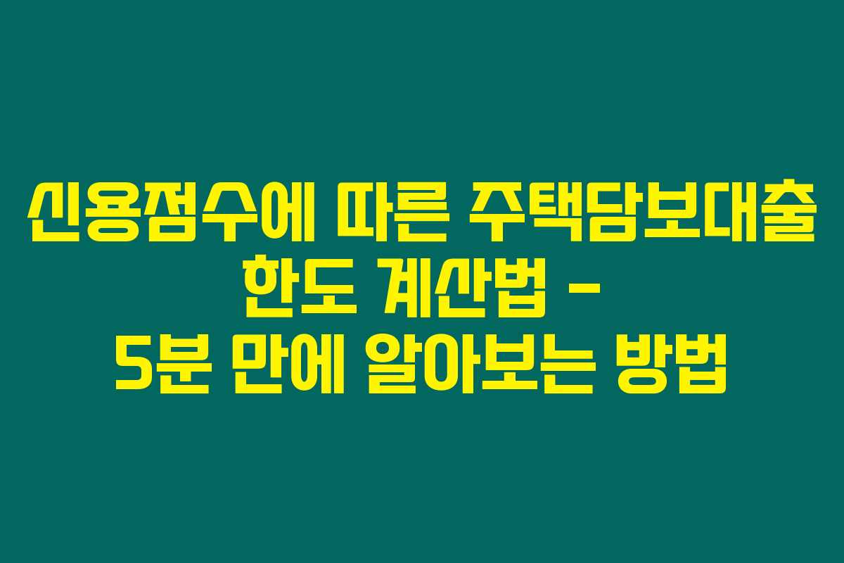 제가 알아본 바로는, 주택담보대출을 받기 위해 가장 큰 영향을 미치는 요소 중 하나는 바로 신용점수라는 사실이에요. 많은 사람들이 이러한 사실을 간과하고, 대출을 위해 필요한 준비를 소홀히 할 때가 많지요. 아래를 읽어보시면, 신용점수별로 주택담보대출 한도를 어떻게 계산할 수 있는지, 얼마나 쉽게 확인할 수 있는지를 알게 될 것입니다.