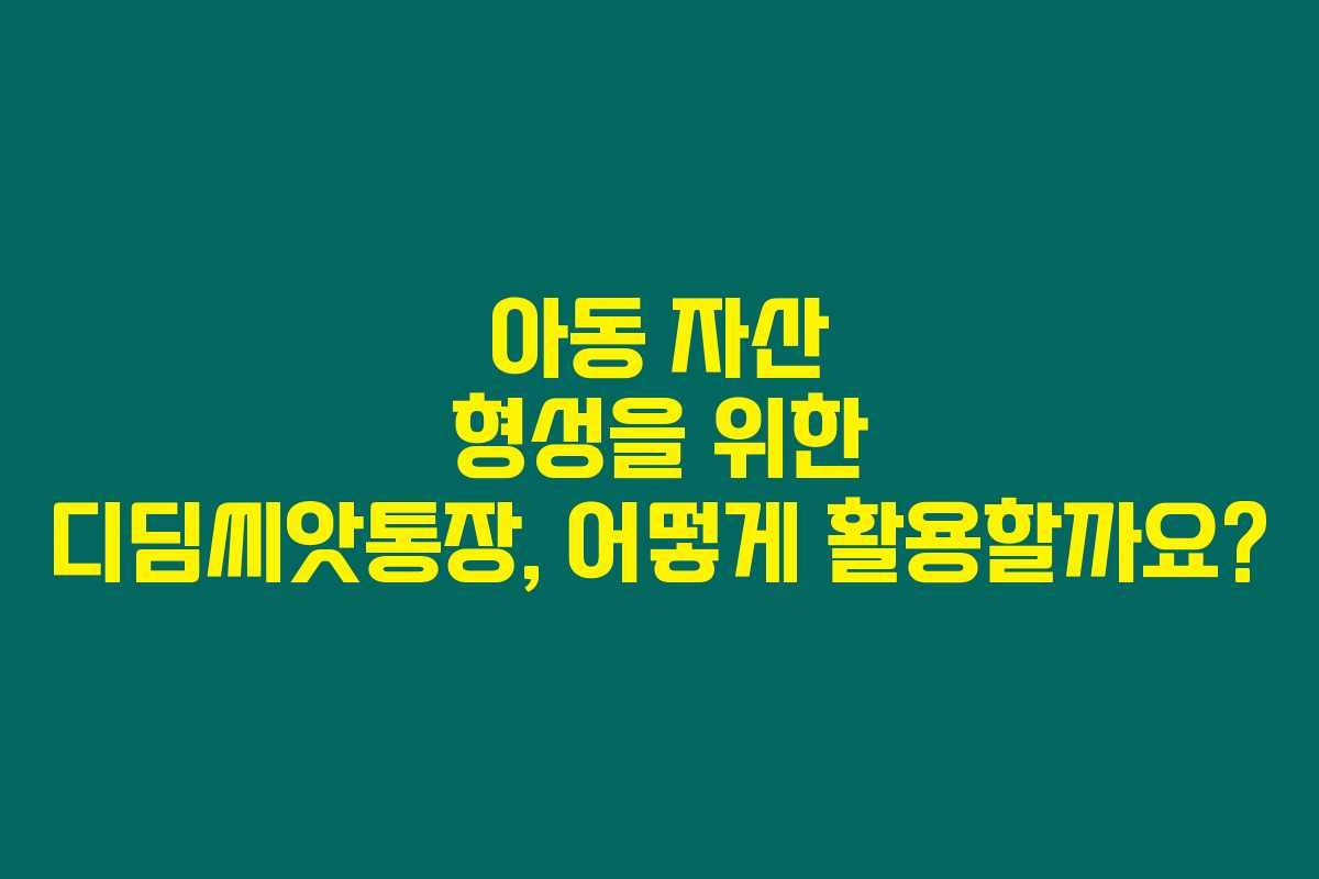 제가 알아본 바로는 디딤씨앗통장은 저소득층 아동 및 아동복지시설 보호 아동들이 자립할 수 있도록 지원하는 중요한 계좌제도입니다. 이 제도를 통해 아동들은 자신의 자산을 형성할 수 있으며, 국가의 지원도 받을 수 있습니다. 아래를 읽어보시면 디딤씨앗통장의 혜택과 활용 방법, 후원 방법까지 폭넓은 정보를 확인할 수 있습니다.