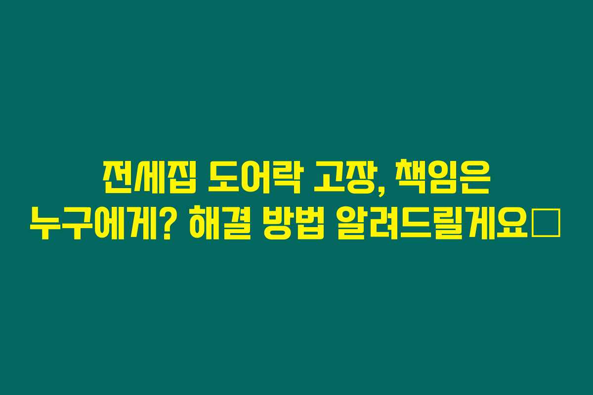 전세집 도어락 고장, 책임은 누구에게? 해결 방법 알려드릴게요🚪
