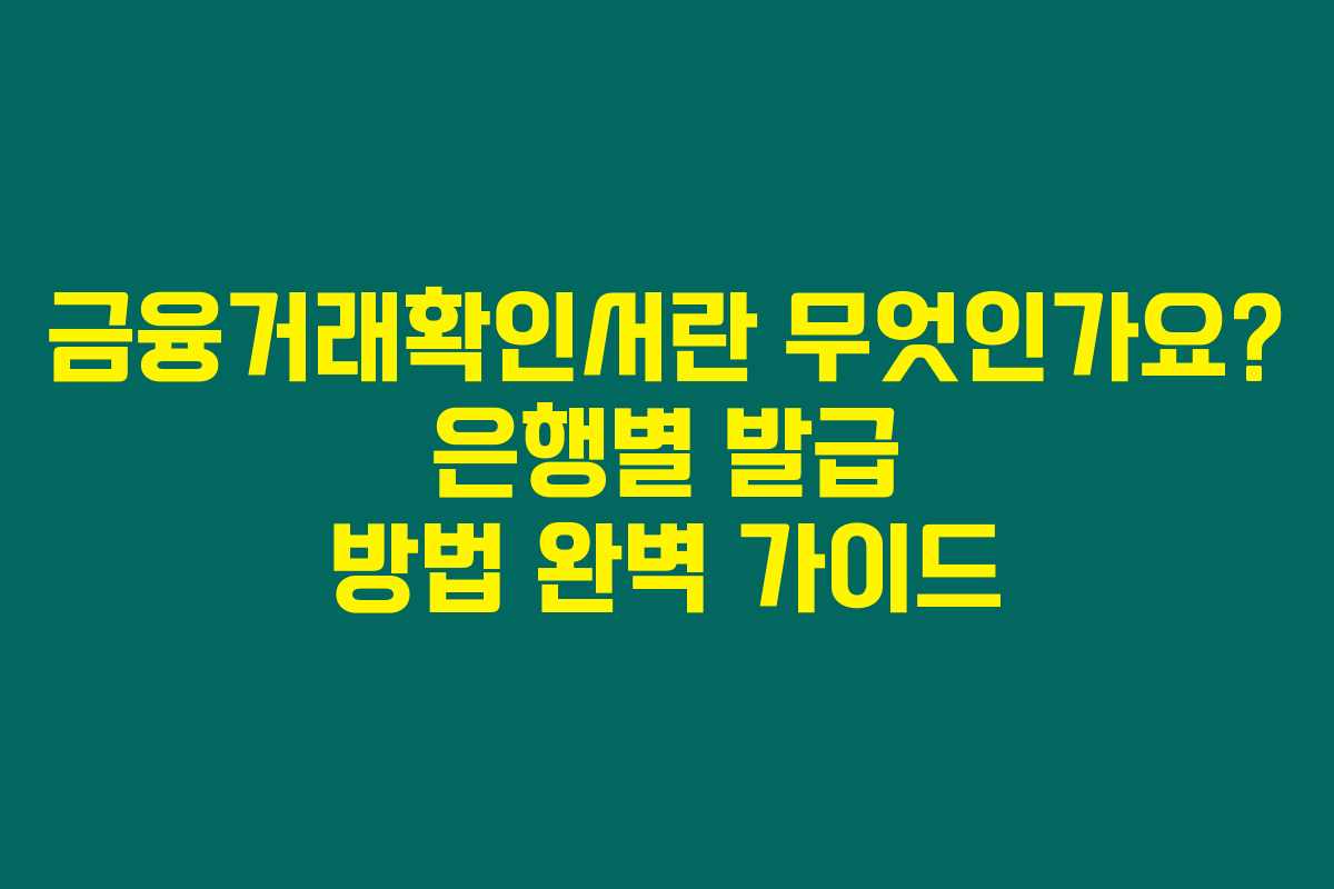 여러분이 필요로 할 금융거래확인서는 각 은행의 정책에 따라 발급받을 수 있습니다. 제가 직접 체크해보니, 많은 은행에서 온라인 뱅킹을 통해 간편하게 발급받을 수 있는데요, 주요 은행별 발급 방법을 정리해드릴게요.