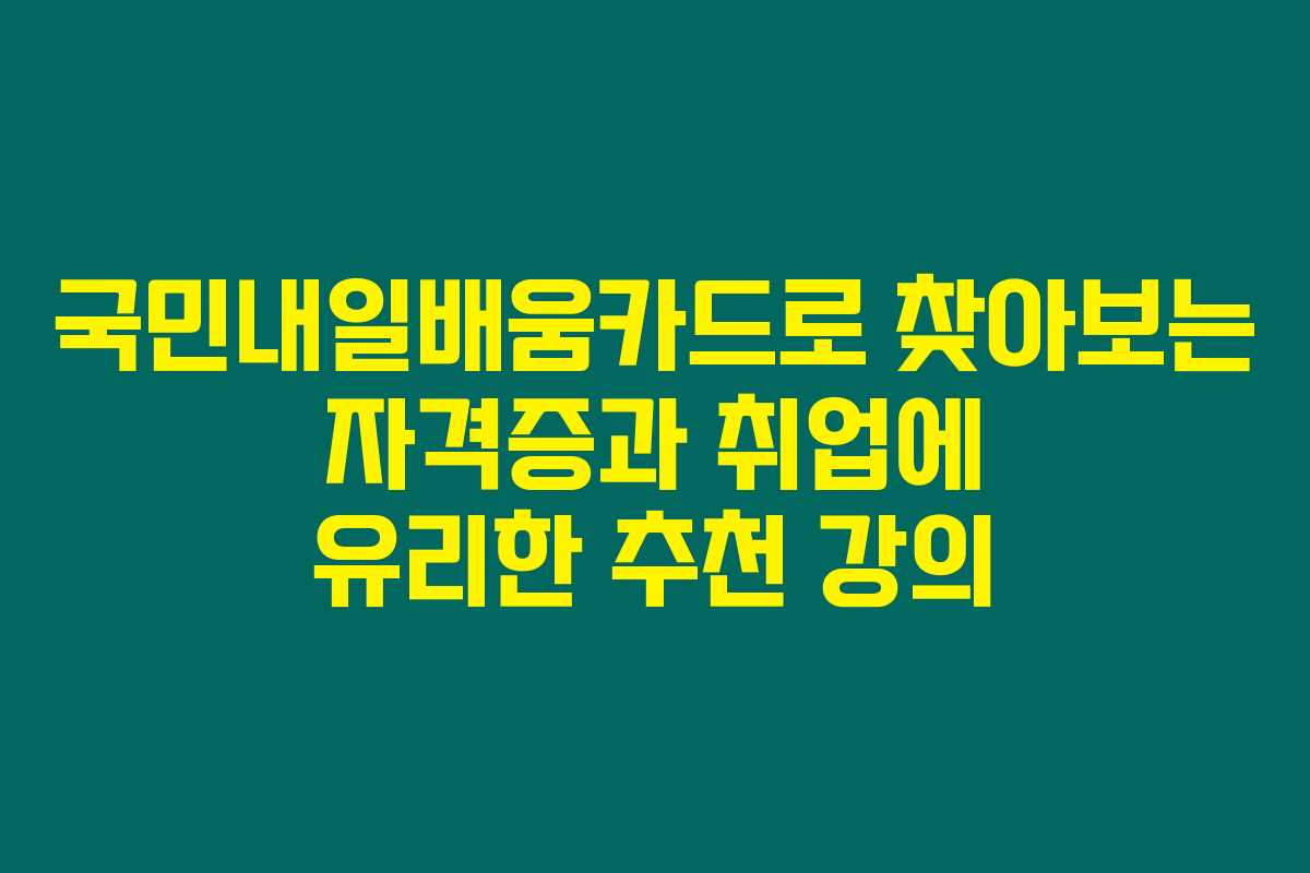 국민내일배움카드는 개인의 학습과 직업 훈련을 지원하는 제도로, 많은 분들이 이를 통해 자격증을 취득하려고 하세요. 제가 직접 경험해본 결과로는, 이 카드로 제공되는 다양한 강의가 실질적인 취업에 큰 도움이 된다는 사실이에요. 내일배움카드를 통해 지원되는 강좌들은 실무 위주로 구성되어 있어 취업 능력을 높이는 데 매우 유용하답니다.