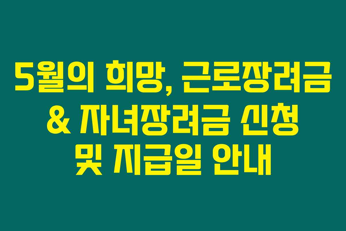 제가 알아본 바로는 5월은 근로장려금과 자녀장려금 신청 기간입니다. 이러한 지원금은 가정의 경제적 여유를 더해줄 수 있는 중요한 요소인데요. 아래를 읽어보시면, 신청 방법부터 지급일까지의 자세한 내용과 꿀팁을 확인할 수 있습니다!