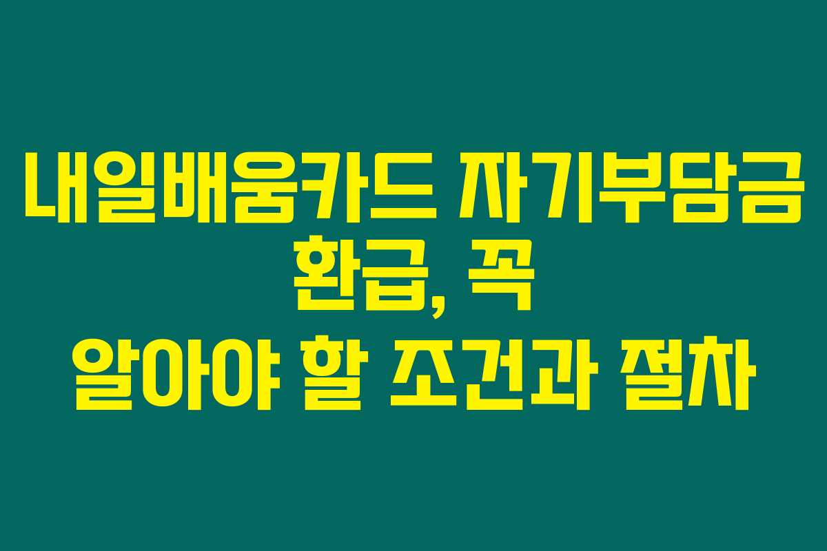 제가 직접 경험해본 바로는, 내일배움카드는 고용노동부의 직업능력개발 훈련 제도 중 하나로, 모든 수강생이 자기계발과 직업능력 향상을 위해 훈련비를 지원받을 수 있는 제도입니다. 하지만 훈련을 수강할 때에는 자기부담금이 필요하다는 사실, 아시나요? 아래를 읽어보시면 자기부담금을 환급받기 위한 조건과 그 절차에 대한 자세한 정보를 확인할 수 있습니다.