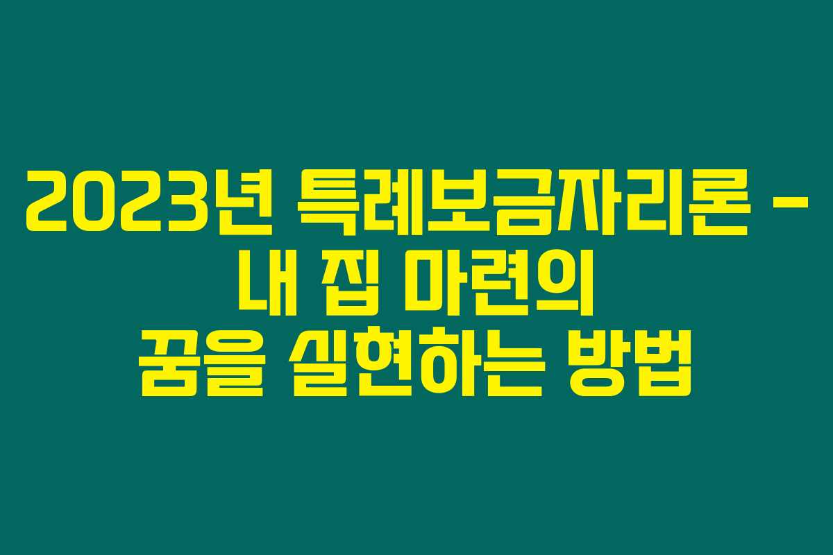 2023년 특례보금자리론은 내 집 마련의 꿈을 이룰 수 있는 아주 좋은 기회입니다. 제가 경험해본 결과로는, 이 제도를 통해 많은 분들이 안정적인 주거 생활을 시작하셨더라고요. 여러분도 정확한 정보를 바탕으로 잘 준비하시길 바랍니다. 혹시 더 궁금한 점이 있다면 언제든지 문의해 주세요!