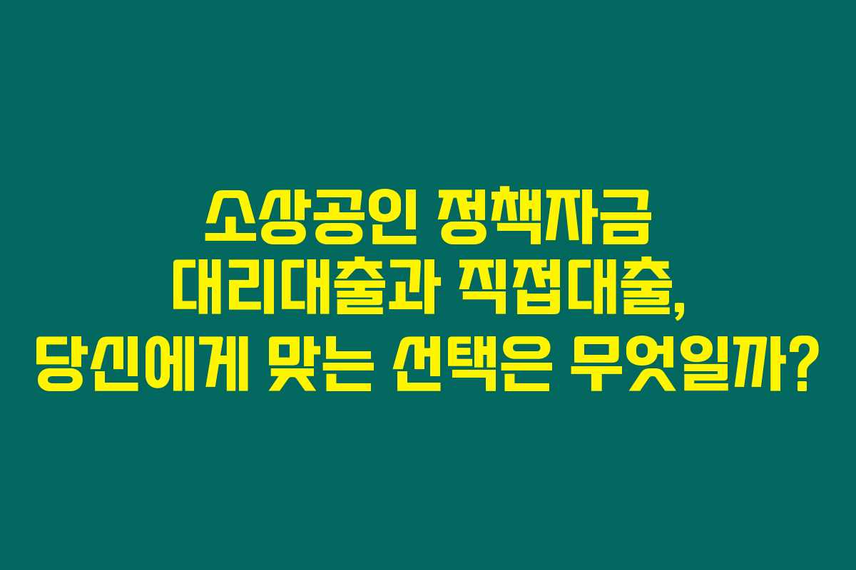 제가 직접 알아본 바로는, 소상공인 정책자금을 활용하는 방법으로 대리대출과 직접대출이 있습니다. 두 가지 대출 방식은 각각의 조건과 절차가 다르기 때문에, 필요에 맞춰 선택해야 합니다. 대리대출과 직접대출의 차이에 대해서 아래를 읽어보시면 도움이 될 거예요.