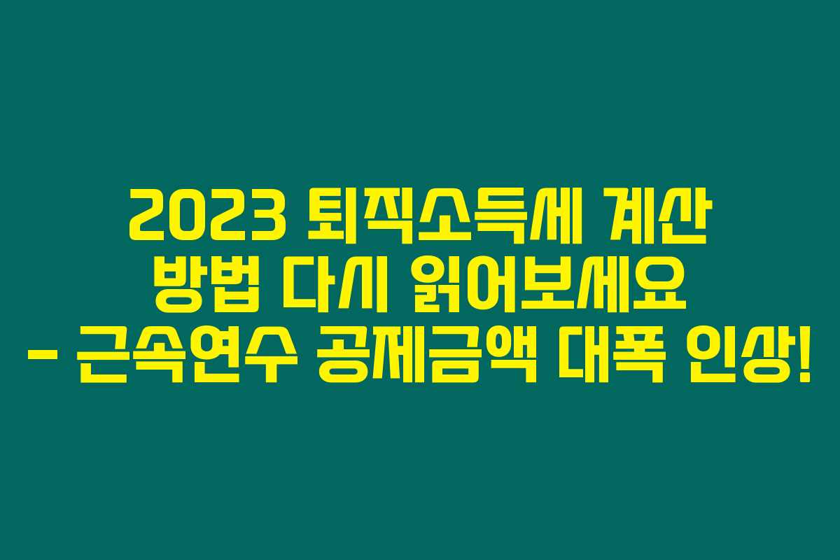 제가 직접 확인해본 결과, 2023년에 개정된 퇴직소득세의 계산 방법과 관련된 중요한 내용들이 있습니다. 이번에 근속연수에 따른 공제금액이 인상되어 많은 분들이 혜택을 누릴 수 있게 되었어요. 퇴직소득세, 즉 퇴직금에 대한 세금 계산 방법을 쉽게 이해할 수 있도록 아래에서 자세히 살펴보도록 할게요.