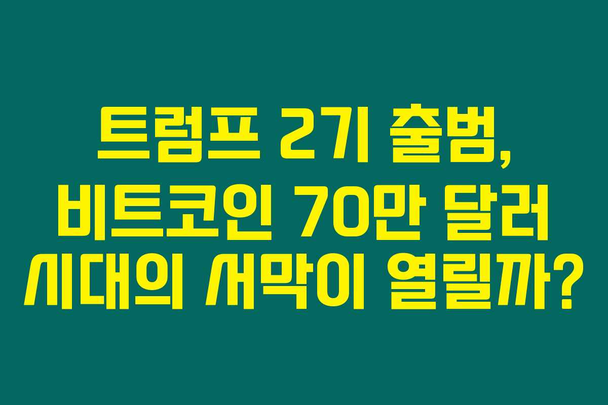 제가 알아본 바로는, 도널드 트럼프 전 대통령의 2기 출범은 미국의 경제와 가상자산 시장에 큰 변화를 가져올 가능성이 높습니다. 특히 비트코인이 70만 달러에 도달할 수 있다는 전망이 제기되면서, 전 세계의 투자자들 사이에서 커다란 관심을 받고 있어요. 아래를 읽어보시면, 이러한 변화가 가상자산 시장에 어떤 영향을 미칠지와 투자 전략에 대해 알아보는 데 도움이 되실 거예요.