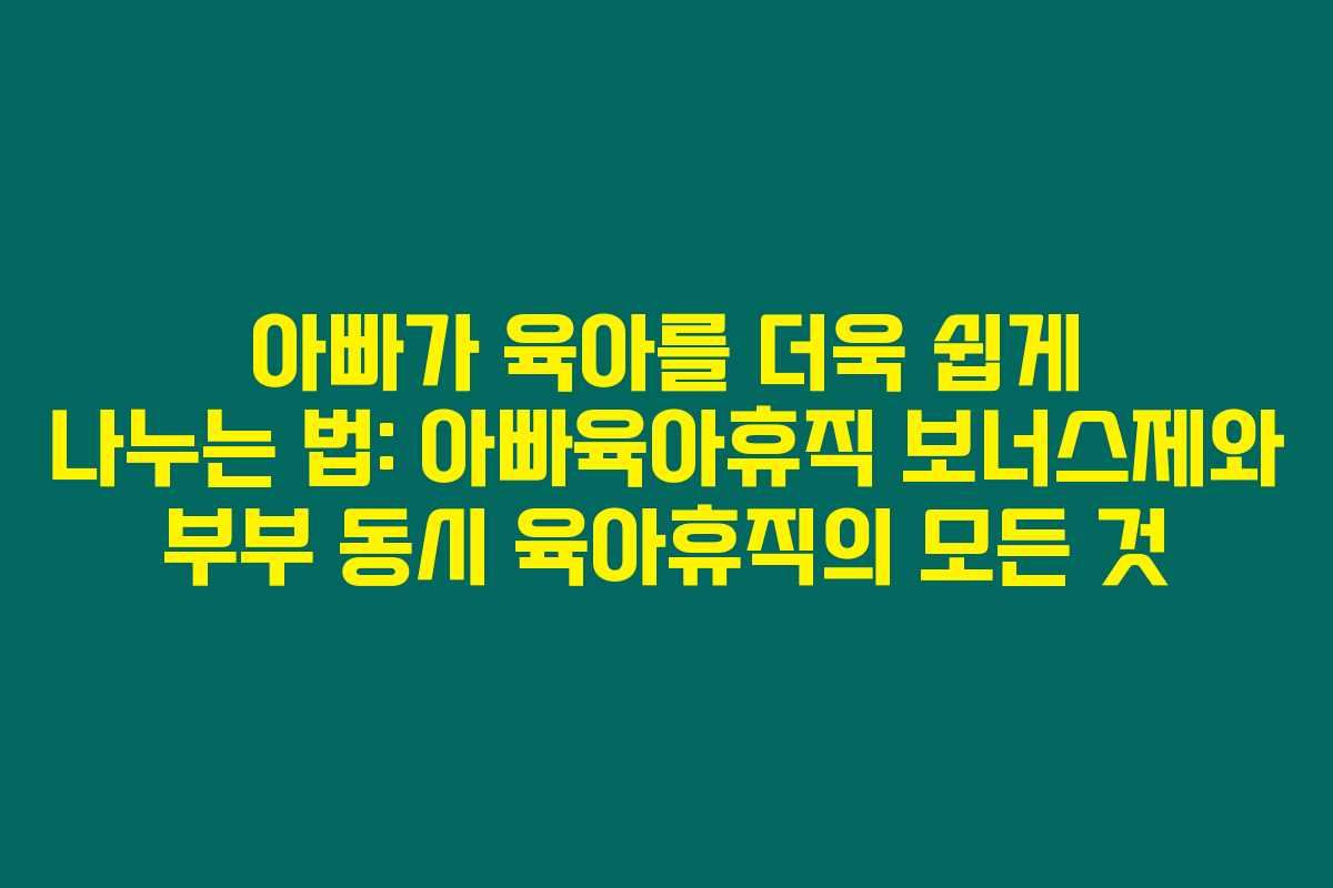 제가 직접 경험해본 바로는, 아빠가 적극적으로 육아에 참여할 수 있도록 돕는 아빠육아휴직 보너스제와 부부 동시 육아휴직 제도에 대해 알아보았습니다. 이 글을 통해 육아휴직의 다양한 혜택과 활용 방안에 대해 자세히 설명해 드릴게요.