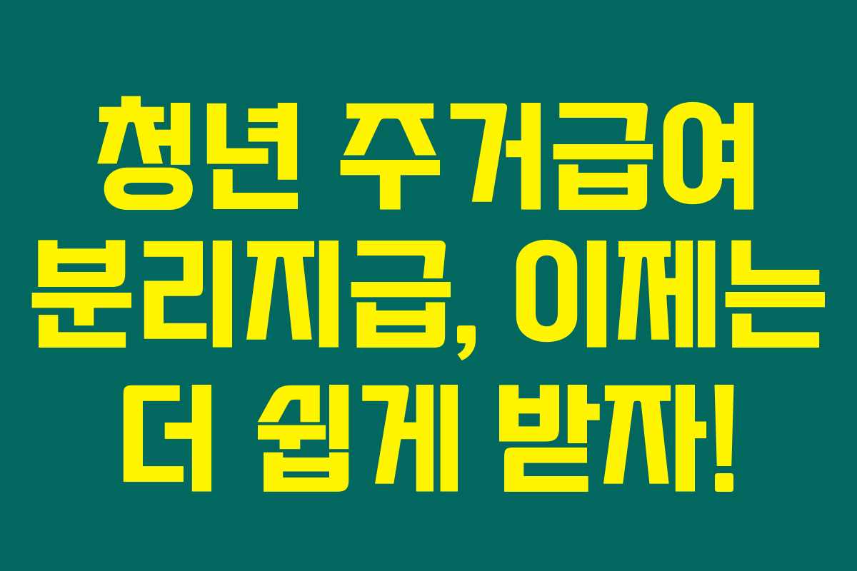 제가 직접 알아본 바로는, 청년 주거급여는 부모와 별도로 거주하는 미혼 청년들도 지원 받을 수 있는 제도입니다. 이번 글에서는 청년 주거급여 분리지급에 대해 자세히 알아보겠습니다. 이 제도를 통해 청년들이 더 안정된 주거환경을 갖출 수 있도록 도와주는 내용지요.