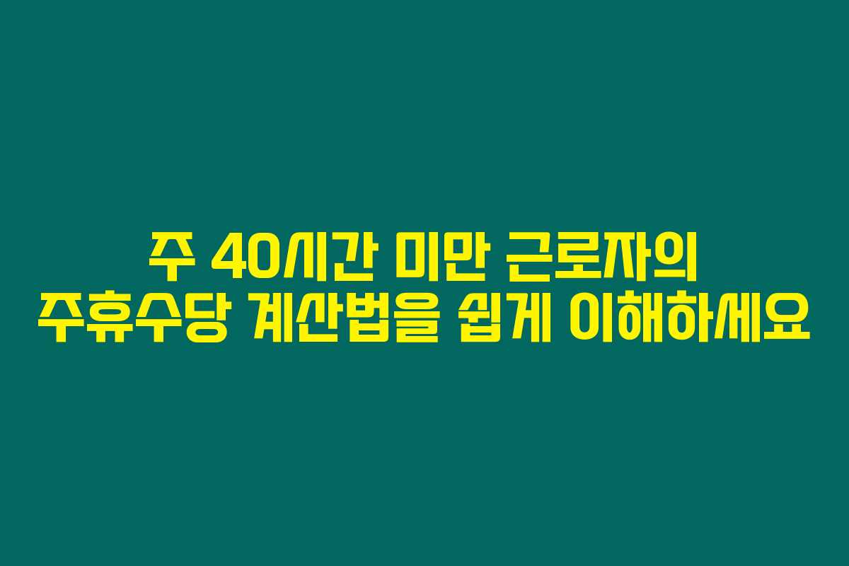 주휴수당 계산에 대해 잘 아시나요? 제가 직접 확인해본 바로는, 주 40시간 미만으로 근무하는 근로자들에게 주여주는 유급 휴일입니다. 이 글을 읽어보시면 주휴수당의 정의부터 계산 방법까지 정확히 이해하실 수 있을 거예요.