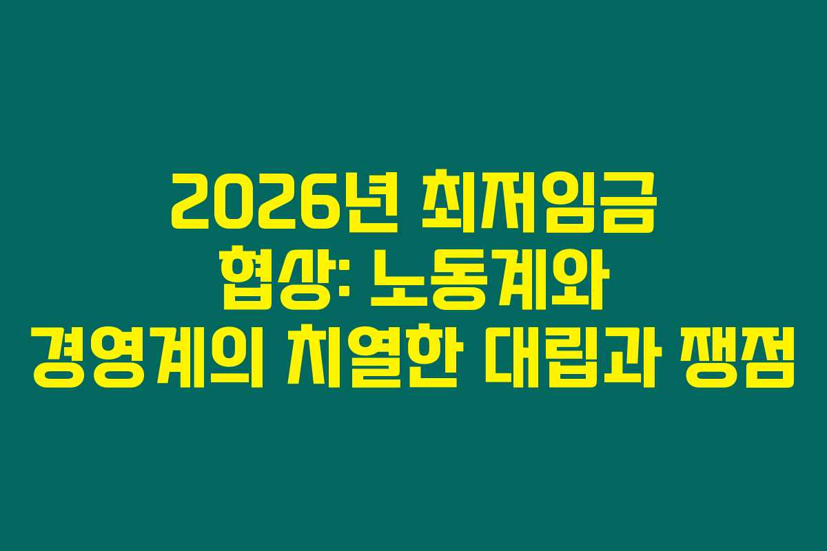 2026년 최저임금 협상은 노동계와 경영계 간의 1,010원 격차로 팽팽한 대결 구도를 이어가고 있습니다. 다양한 경제적 변수들이 최저임금 인상률에 복합적인 영향을 미치고 있으며, 공익위원의 균형적인 역할이 꼭 필요합니다. 협상이 성공적으로 마무리되기를 기대하며, 각 이해관계자들이 사회적 타협점을 찾는 과정이 중요하겠지요.