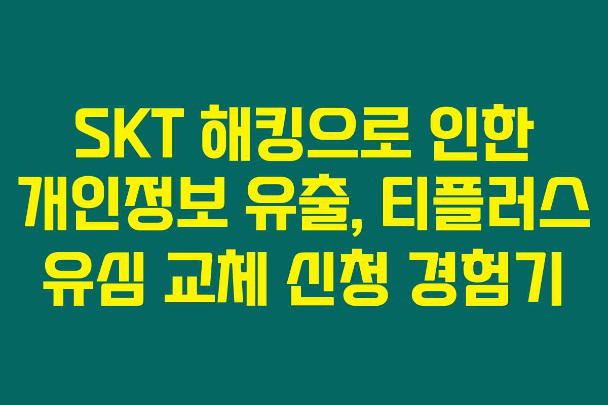 제가 직접 리서치한 바로는, 최근 SK텔레콤에서 발생한 해킹 사건으로 많은 사용자들이 개인정보 유출에 대한 심각한 우려를 가지고 있습니다. 알뜰폰 사용자들, 특히 SKT망을 이용 중인 티플러스 고객들은 더욱 불안해지고 있습니다. 아래를 읽어보시면, 유심 교체 신청 과정을 통해 느낀 점과 유용한 정보들을 공유하고 싶습니다.