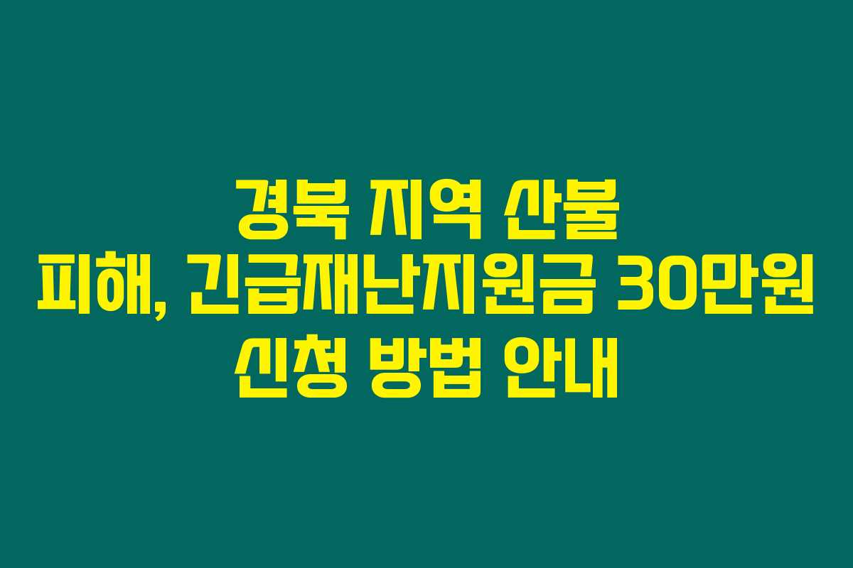 최근 경북 지역으로 발생한 대규모 산불로 인해 많은 주민들이 심각한 피해를 입었습니다. 제가 직접 리서치한 바로는, 경상북도는 이러한 피해를 돕기 위해 1인당 30만 원의 긴급재난지원금을 지급하기로 결정했습니다. 아래를 읽어보시면 지원대상, 신청 방법, 지급 절차 등 관련 정보를 자세히 안내해 드리겠습니다.