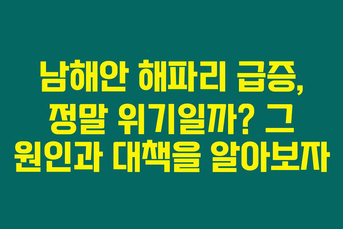 최근 남해안에서 해파리가 급증하고 있다는 소식에 많은 이들이 우려하고 있습니다. 해양수산부는 이에 따라 ‘관심’ 경보를 발령하였는데요. 아래를 읽어보시면 해파리의 종류와 발생 현황, 대응 방안 등을 자세히 알아볼 수 있습니다.
