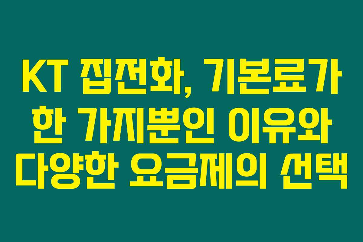 KT 집전화 이용을 고려하는 많은 분들이 첫 번째 커다란 의문으로 기본료가 한 가지밖에 없는 이유를 고민하셨을 거예요. 아래를 읽어보시면 사실, 여러 요금제나 할인 정책을 통해 합리적인 비용으로 더 나은 서비스를 이용할 수 있다는 사실을 알게 되실 거예요.