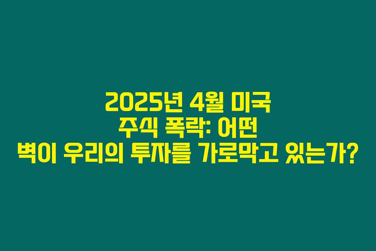 2025년 4월, 미국 주식시장에서의 대규모 폭락은 단순한 시장 변동을 넘어 많은 투자자들에게 큰 충격을 주었습니다. 이 충격의 주된 원인에는 트럼프 행정부의 대중국 관세 확대 정책이 자리잡고 있었으며, 그로 인해 전 산업에 걸쳐 매도세가 확산되었지요. 아래를 읽어보시면, 폭락의 원인과 관세 정책이 미친 산업별 영향, 그리고 이러한 시대 속에서 어떻게 효과적으로 대응할 수 있는지를 다룬 투자자 전략 가이드를 살펴볼 수 있습니다.