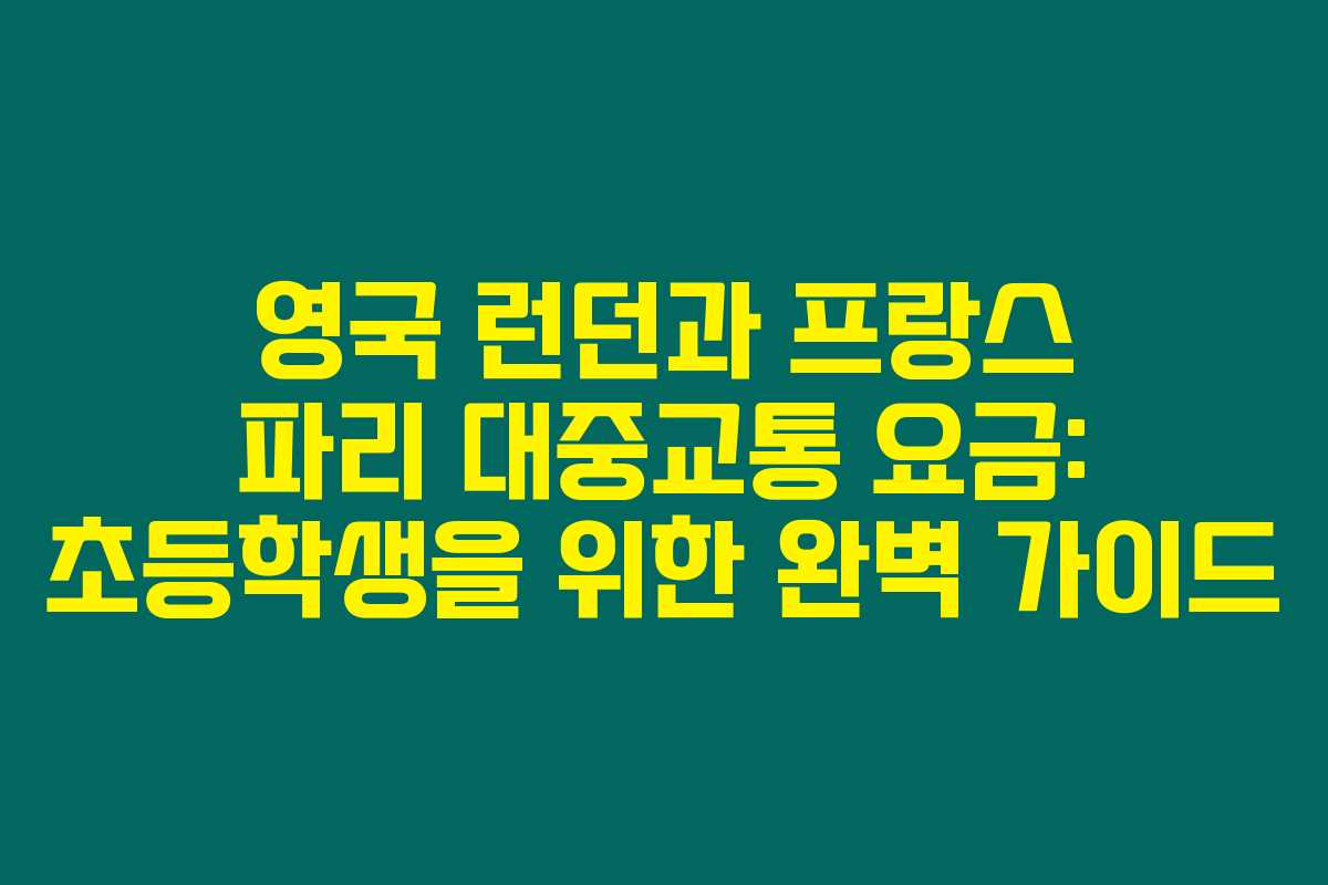 2023년에 영국 런던이나 프랑스 파리를 여행할 계획이라면 대중교통 요금이 매우 중요해요. 초등학생도 포함된 가족 여행의 경우, 비용을 아끼기 위한 다양한 방법이 필요할 수 있답니다. 혹시 초등학생이 포함된 여행에서는 대중교통 요금에 대해 어떻게 대처할 수 있는지 궁금한 분이 계실까요? 아래를 읽어보시면 유용한 정보가 가득하니 꼭 확인해 보세요.