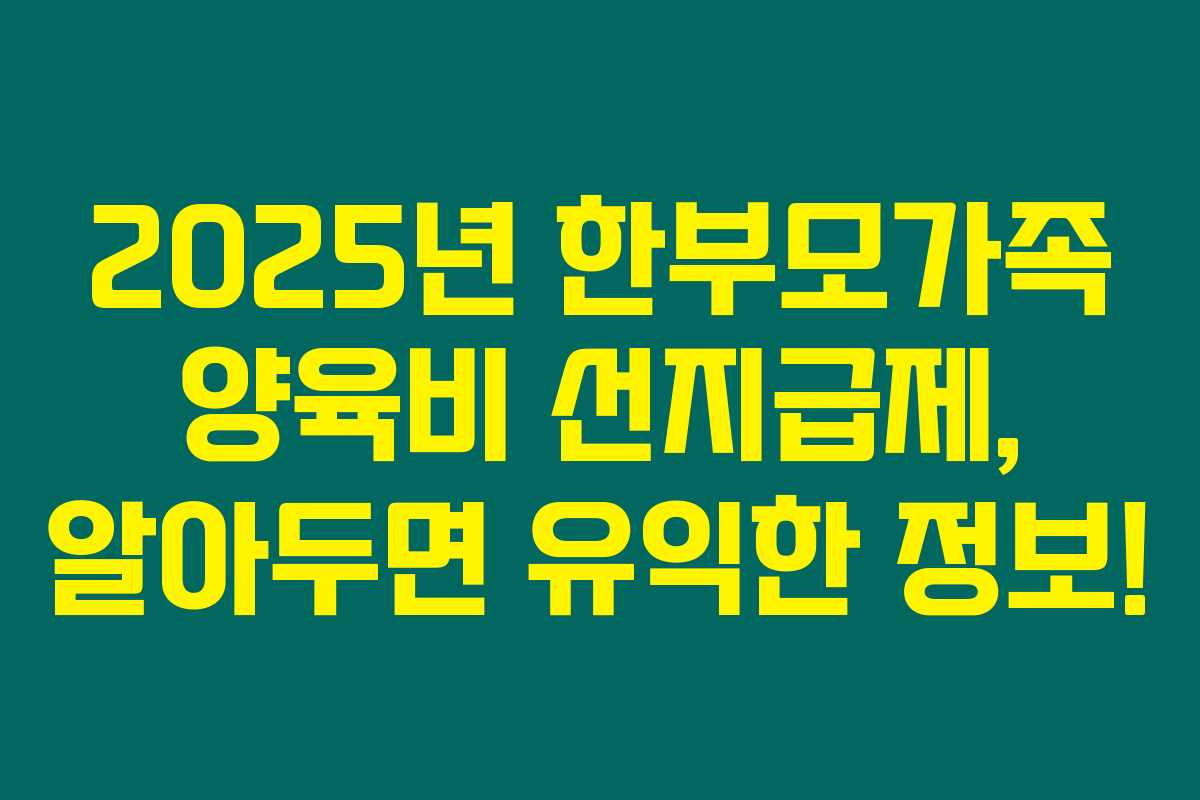 한부모가족은 경제적 어려움이 많은데, 특히 양육비를 제대로 지급받지 못할 때 그 부담이 엄청 커지죠. 다른 가정에서는 당연한 양육비를 받지 못하는 상황은 정말 힘들어요. 이렇게 어려운 시기에, 2025년부터 시작되는 양육비 선지급제는 한줄기 빛이 될 것이라고 생각해요.