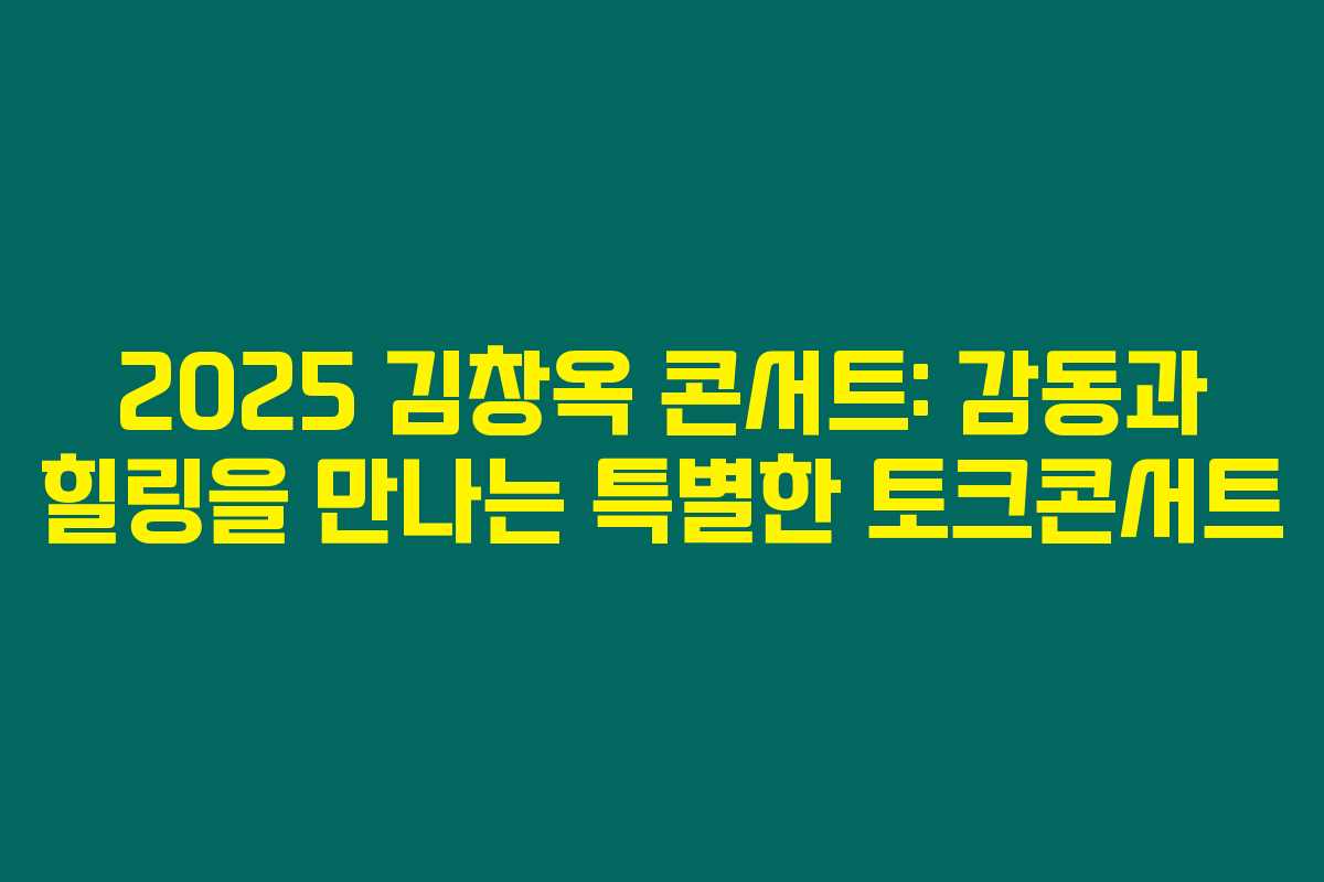 2025 김창옥 콘서트: 감동과 힐링을 만나는 특별한 토크콘서트