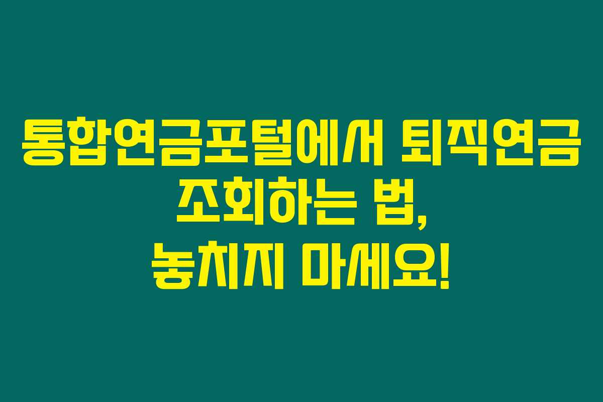 1. 통합연금포털에서 퇴직연금을 조회할 때 필요한 것은 무엇인가요?