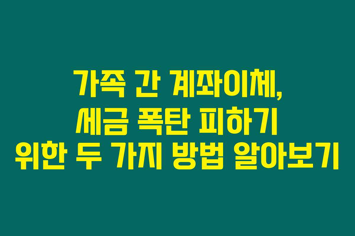 5월부터 가족 간 계좌이체 시 세금에 대한 걱정이 커지고 있다는 사실 알고 계셨나요? 기획재정부의 새로운 세법 시행령을 통해 가족 간의 자금 이동이 더욱 투명해지고 증여세와 같은 세금 문제부터 신경 써야 할 사항이 많아졌답니다. 특히 2025년 5월부터 강화되는 금융계좌 추적 시스템은 가족 및 친척의 금융 거래를 국세청이 직접 확인할 수 있도록 바뀌었어요. 이 때문에 무심코 주고받는 금액이 나중에 세금 폭탄으로 돌아올 수 있는 위험이 있다고요? 그래서 오늘은 가족 간 계좌이체 시 주의해야 할 점과 증여세를 피하는 2가지 방법을 자세히 알아보도록 할게요.