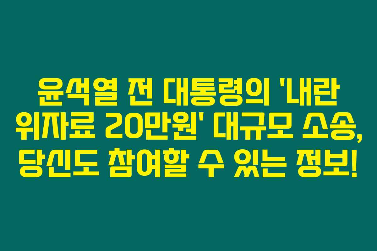 최근 ‘내란 위자료’, ‘윤석열 소송’, ‘비상계엄 피해’와 같은 키워드가 인터넷을 뜨겁게 달구고 있어요. 혹시 이 사건에 대해 알고 계신가요? 윤석열 전 대통령이 발표한 ’12·3 비상계엄 선언’으로 인해 정신적 피해를 입은 시민들이 대규모 소송을 진행하고 있습니다. 하루 만에 500명이 넘는 사람들이 참여한 이 소송의 최신 정보와 참여 방법을 아래를 읽어보시면 자세히 알 수 있어요.
