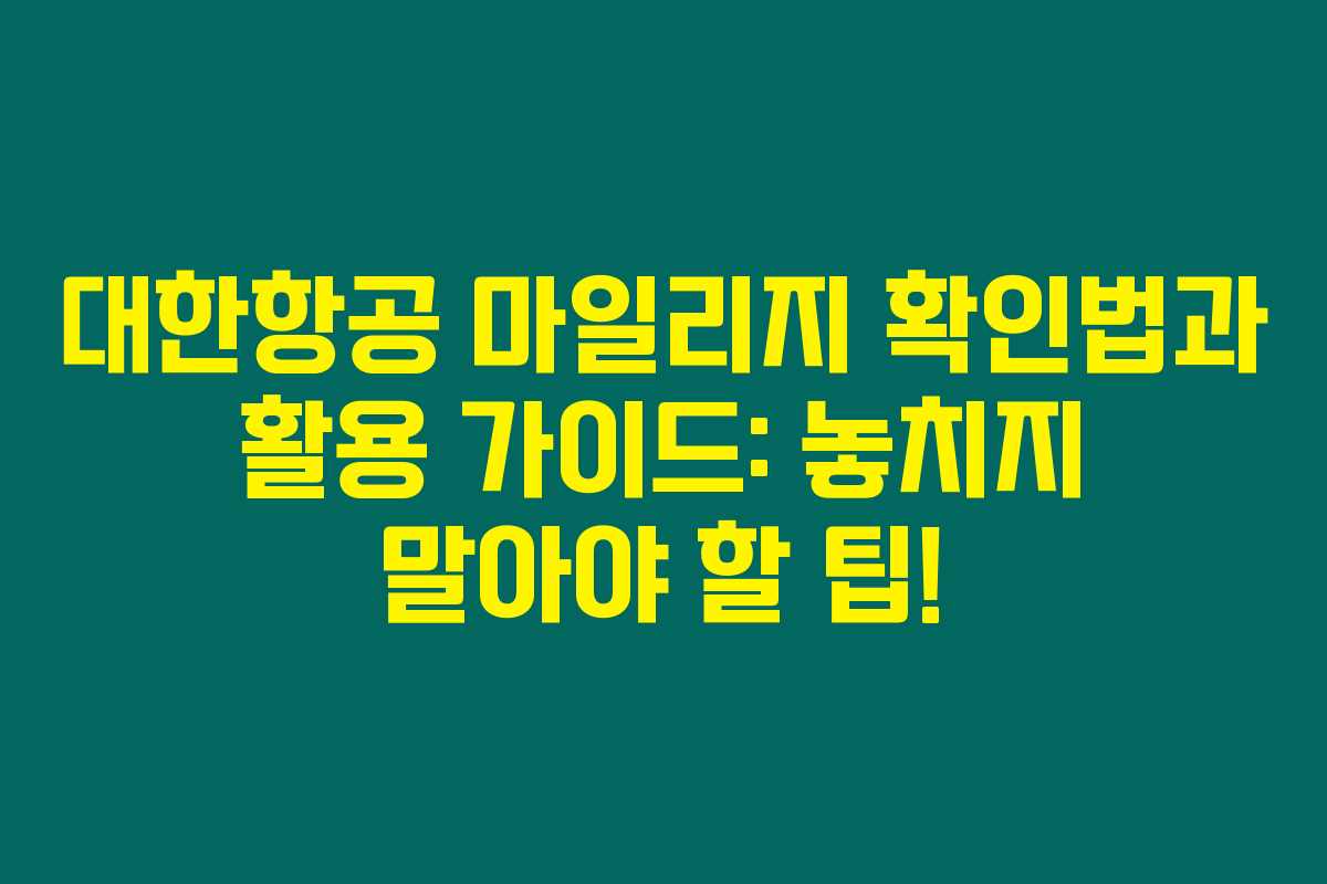 모든 정보는 여러분의 대한항공 마일리지를 효율적으로 관리하는 데 큰 도움이 될 거예요. 알찬 여행을 준비하며 더 많은 혜택을 누리세요!