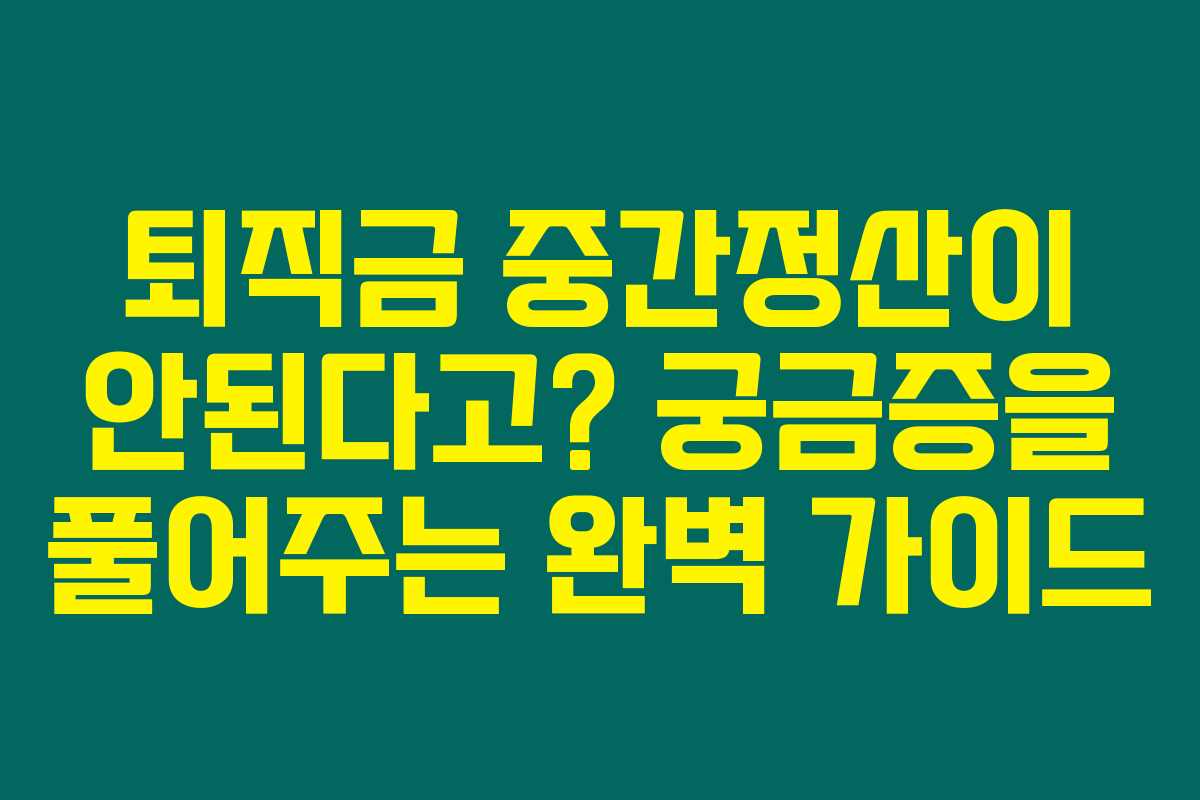 퇴직금 중간정산은 법적으로 특정한 사유에 해당해야만 가능해요. 예를 들어 주택 구입 또는 의료비 등 인정되는 사유 이외에 다른 이유로는 신청이 거부될 수 있답니다. 개인적인 사정으로는 중간정산이 되지 않아요.