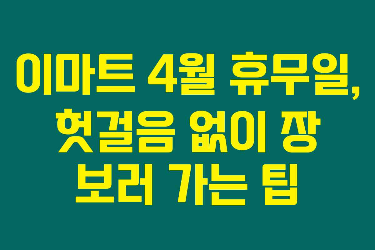 이마트를 자주 이용하시는 분이라면, 4월 이마트 휴무일 꼭 체크해야 해요. 헛걸음하는 일이 없도록 미리 준비하는 것이 중요한데요. 이번 4월의 이마트 휴무일과 함께 장보러 갈 때 유용한 정보들을 소개해드릴게요.