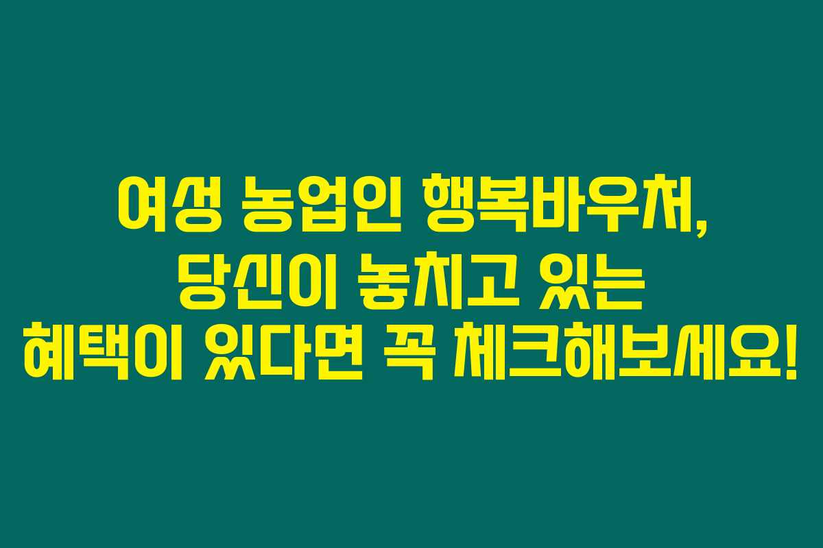 여성 농업인 행복바우처의 자격 조건과 사용처를 아래를 읽어보시면 상세히 알 수 있을 거예요.