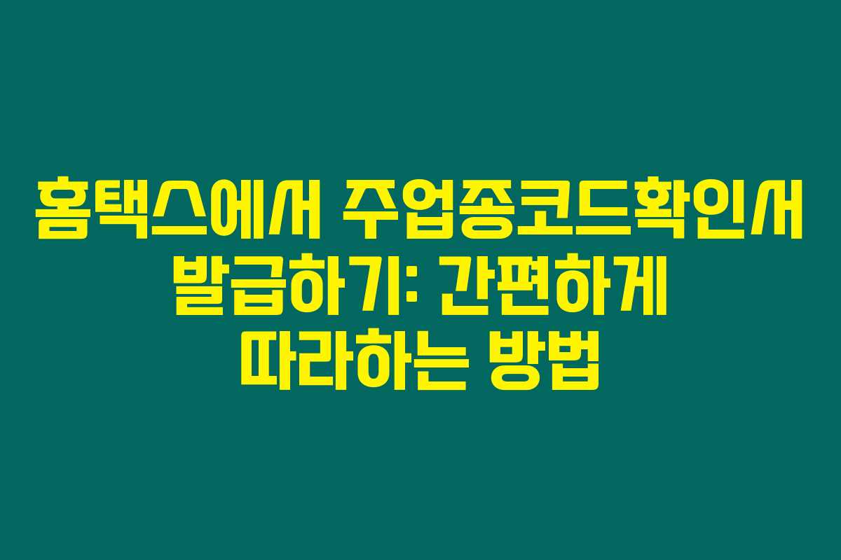 주업종코드는 사업체의 업종을 관리하기 위해 국세청에서 정해준 6자리 코드로, 사업 등록 시 선택해야 하죠. 그래서 주업종코드확인서를 발급하는 방법을 정확히 알고 있어야 해요.